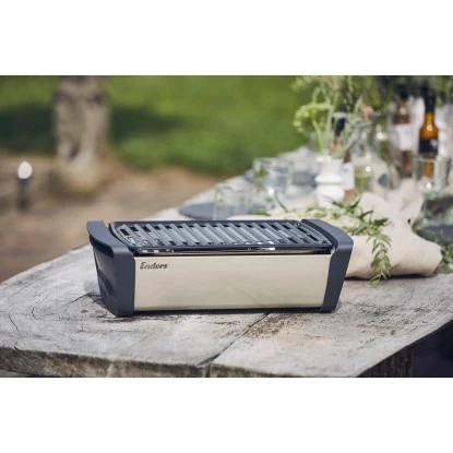 Die extrem flache Bauweise von 13,5 cm garantiert ein angenehmes Grillen bei Tisch. Das hochwertige und elegante Design wurde 2017 mit dem Red Dot Award ausgezeichnet. Der emaillierte Grillrost ist leicht zu reinigen. Außerdem sind die Einzelteile herausnehmbar und ebenfalls aus hochwertigem Edelstahl, so dass die Reinigung noch müheloser gelingt. Für einen langen Grillabend sorgt das großvolumige Kohledepot. Die kompakte, ergonomische Gestaltung ist besonders einfach zu handhaben. Sie können sogar eine Power-Bank an den Grill anschließen. Dank der integrierten Tragemulden ist der Aurora schnell einsatzbereit und komfortabel zu transportieren.