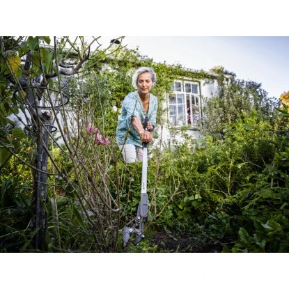 Die Gardena Astschere SlimCut dient zum Auslichten und Verjüngen von Büschen und Sträuchern. Dabei erzielt Sie besonders saubere und präzise Schnitte und schneidet Äste bis zu einem Durchmesser von 28 mm. Aufgrund des schmalen Schneidkopfes und des langen Aluminium-Stiels, ist die Baumschere bestens zum Bearbeiten von dichtem und verwachsenem Gestrüpp geeignet.