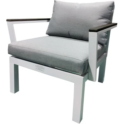 – Nebeneinander gestellt Das Gestell ist aus Aluminium gefertigt und ist somit gegenüber Gestellen aus anderen Materialien rostbeständig. Die Holzoptik-Komponenten bestehen aus WPC (=Holz-Kunststoff Gemisch) und sind dadurch wetterbeständig: die Streben verbiegen und verziehen sich nicht, eine Nachbehandlung oder ein Streichen ist nicht erforderlich. Die Sitzauflagen und Rückenkissen runden das elegante Flair ab. Die Bezüge können mithilfe von verdeckten Reißverschlüssen bei Bedarf abgenommen und gewaschen werden. Die Deko-Kissen bieten Gemütlichkeit und die Sitzauflagen haben mit ca. 10 cm einen hohen Sitzkomfort.