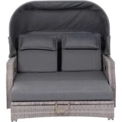 Die Siena Garden Loungeinsel Lobos geht nun in die nächste Runde. Mit qualitativen und optischen Modifikationen sind wir aus dem Hause Siena Garden froh, Ihnen nun die Loungeinsel Lobos II vorstellen zu können. Die Loungeinsel zeichnet sich dadurch aus, dass sie sehr kompakt ist und in kürzester Zeit aufgestellt werden kann. Nur das Dach muss noch montiert und die Kissen auf die Lounge gelegt werden. Hochwertige Materialien kombiniert mit praktischer Funktionalität geben hier den Ton an. Das Dach ist klappbar und die beiden Rückenlehnen sind unabhängig voneinander stufenlos und hydraulisch verstellbar. Das Kissen des Fußteils lässt sich praktisch in dem selbigen verstauen und dann samt dem Fußteil unter die Insel unterschieben. So können Sie die Loungeinsel als Liegefläche oder als normale Bank benutzen. Das Gestell ist aus pulverbeschichtetem Aluminium gefertigt und mit einem doppelhalbrunden Gardino-Geflecht umflochten. Die Sitz- und Rückenkissen sind aus hochwertigem Polyester hergestellt und bieten hervorragenden Sitz- und Liegekomfort. Nutzen Sie zur Reinigung des Geflechts einfach einen üblichen Wasserschlauch und lösen Sie den Schmutz mit einer herkömmlichen, milden Reinigungslauge. Genießen Sie Ihre Freizeit in Ihrem Garten oder auf den Balkon mit der Loungeinsel Lobos II aus dem Hause Siena Garden.